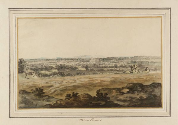 Editor: Here we have Dirk Maas’ “View of Namur from the East during the Siege of 1695,” created in watercolor. It's interesting how he captured this distant cityscape under siege. It feels both calm and tense at the same time. What do you see in this piece? Curator: I see the iconography of power, really. Notice how the city is presented: fortified, distant, almost unattainable. The siege isn't depicted as chaotic, but as a strategic observation. Consider what it means to choose this vantage point, slightly removed, looking down. Is it a perspective of control? Of inevitable victory? Editor: It's interesting that you point out the "control" perspective. Are there other visual elements that speak to that idea? Curator: Absolutely. The lines of the fortifications, for example, they repeat the same shapes to further communicate power. They are strong lines of defense, almost mathematically precise, create an emotional sense of permanence against the impermanence of conflict. The symmetry suggests order and authority. Editor: It’s like the city becomes a symbol rather than just a place. And it seems almost detached, impersonal. Curator: Precisely! The city transforms into an emblem of resilience and a testament to strategic power. This view is not simply a representation of conflict; it's an assertion of enduring strength and dominance. What did you get from that? Editor: Thinking about the image as an icon of power rather than just a historical depiction has really changed my perspective on what Maas was trying to convey. Curator: Yes, by looking past the immediate context, we uncover the deeper cultural and psychological weights the image carries.
