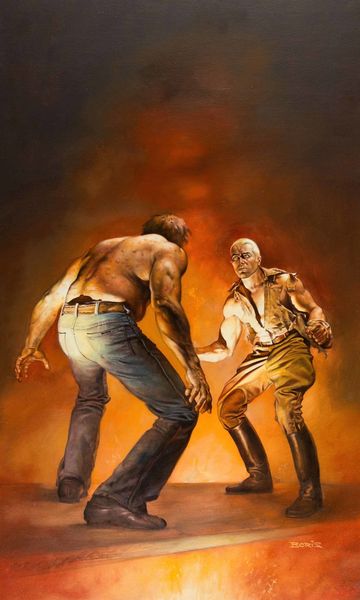 Editor: Here we have Ernie Barnes's "Study Sketch for Dance Couple," created around 1994, seemingly in watercolor and acrylic paint. The elongated figures immediately catch my eye – there's an incredible sense of movement and energy. What strikes you when you look at this piece? Curator: It's Barnes capturing a vibrant cultural expression. I think the exaggerated features aren’t just stylistic; they represent the feeling and dynamism of Black social dance. Consider where this image was made –the nineties, hip hop, and the ongoing negotiation of Black representation in popular culture. How might this relate to the public image of Black Americans at that time? Editor: I suppose the exaggeration almost feels like a playful challenge to stereotypical representations, injecting a sense of life and celebration. Curator: Precisely! Barnes often portrayed everyday African American life, reclaiming narratives and countering mainstream depictions that frequently marginalized Black communities. And that choice of acrylic and watercolor! How does that strike you in this context? Editor: It’s interesting because they are seemingly simple, readily available media. Perhaps that accessibility ties into his desire to represent everyday life and democratize the image-making process. Curator: Exactly. The materials themselves become part of the socio-political commentary. The lack of pretension in the artistic execution underscores the honesty and the accessibility of the image. It begs the question of the role of galleries in representing work like this, don't you think? Editor: Definitely. I never considered how deeply intertwined the technique and materials were with the overall message of cultural representation. Curator: These details really open up the work, don’t they? Always consider the role of social and institutional structures on how artwork is both seen and interpreted.