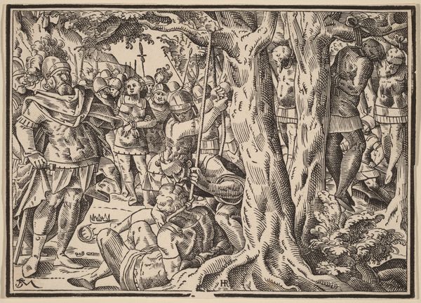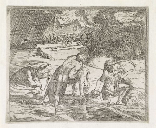 This is an illustration of a story from Ovid’s "Metamorphoses", likely dating from after its rediscovery in 1070. The tale reflects on the ways institutions of power affect the lives of those they govern, with themes of transformation and consequence. The image creates meaning through classical references, like the bathing nymphs and the hunter, interwoven with a northern European sensibility in the detailed forest setting. Ovid’s work was very popular during the medieval period, offering a trove of narratives that explored human nature and morality, often in the context of encounters with the divine or supernatural. The Catholic Church and royal courts were important patrons of such work. Analyzing such art, the historian would consider the social function of these tales in shaping cultural values and questioning authority. Close study of the text, the life of the author, and the artistic style give insight into the interplay between text, image, and social context.