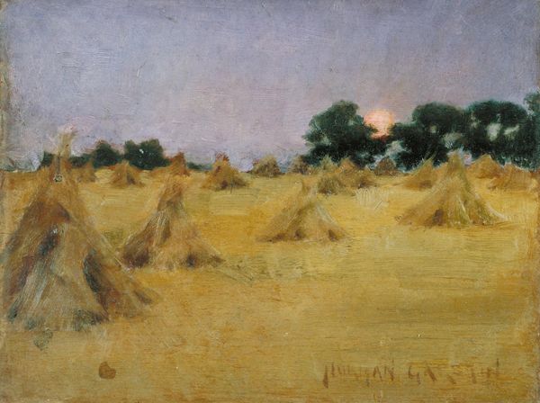 Edmond-François Aman-Jean painted 'The Outskirts of a Village' with oil on wood during a period when France was undergoing significant social and economic change. Aman-Jean’s portrayal offers a tranquil, even romantic, view of rural life, yet this was a time of growing industrialization and urbanization. One can consider his painting a gentle resistance to rapid modernization, a quiet nod to the slower rhythms of the countryside. Note the subdued palette dominated by greens and browns, reflecting the natural tones of the fields and trees. It evokes a sense of calm, but also perhaps a muted commentary on the changing landscape of France. Aman-Jean, who was deeply embedded in the artistic circles of his time, offers us a glimpse into a world that was both cherished and, in some ways, fading. This painting captures a specific moment in time, laden with the tensions between tradition and progress. It’s a landscape, but also a cultural and historical document.