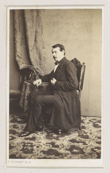 Jacobus Johannes de Haan made this small portrait of a seated man with his dog. It's a study in sepia tones, from the man's dark suit to the furry friend at his feet, all rendered with an eye for capturing texture and character. The art feels so process-oriented, like an exploration of light and shadow. The sepia palette gives it a timeless quality, but it’s the details that really grab me. Notice the way the light catches the edge of the man's moustache, it’s almost sculptural. And then there's the dog, its fur a soft, dark mass. The artist really seems to be relishing the tactile quality of the coat. It's as if he built the form through touch as much as sight. This image shares the photographic portraiture of artists like Nadar and Julia Margaret Cameron, who were also exploring photography's ability to reveal personality and emotion. Ultimately, it's a reminder that art is always in conversation with itself, with artists borrowing, responding to, and reimagining the ideas of those who came before.