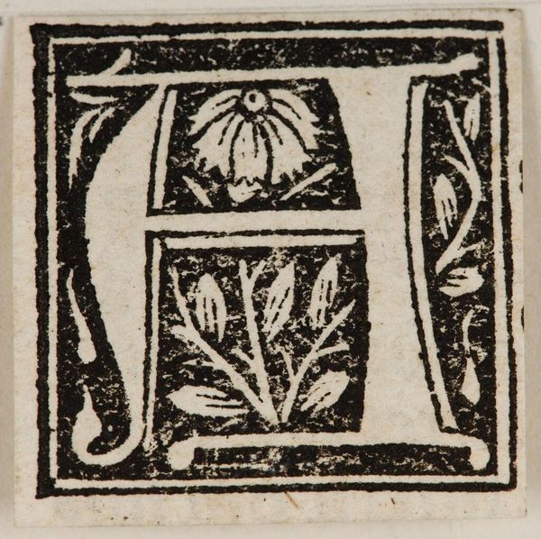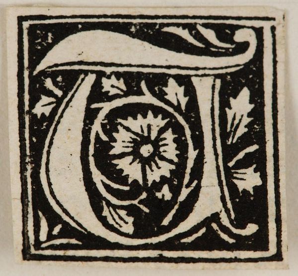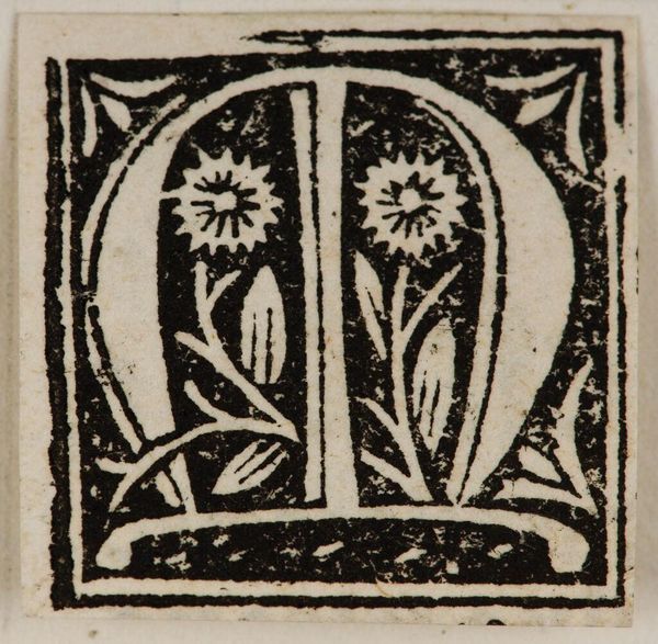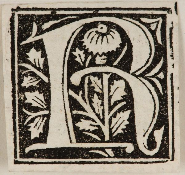 Editor: This is "Initial P" by an anonymous artist. It looks like a woodcut and features a letter "P" intertwined with floral elements. What's particularly interesting about this piece to you? Curator: Considering the context of its likely production, I wonder about the labor involved in creating something like this. Was it mass-produced for a specific market? What was the cost of the materials compared to the final product? Editor: That’s a fascinating angle. So you’re looking at it less as a unique art object and more as a manufactured commodity? Curator: Precisely. The materiality of the block and the process of its making speaks volumes. It also challenges the divide between "art" and "craft," wouldn't you agree? Editor: I never thought of it that way before. It definitely gives me a new perspective.