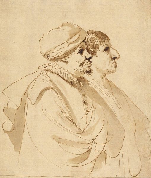 Curator: Here we have Stefano della Bella's "Twee Turkse mannen met snorren en tulbanden," which translates to "Two Turkish Men with Mustaches and Turbans," dating somewhere between 1620 and 1664. It's an etching, currently held here at the Rijksmuseum. Editor: My first thought? Intricate and vaguely unsettling. There’s a certain weight to their gaze, and those elaborate turbans seem almost… top-heavy. Curator: Yes, unsettling is a good word. These aren’t portraits in the typical sense; more like studies in otherness. Della Bella, like many artists of the period, was fascinated by exoticism, and etching allowed him to disseminate these images widely. It allowed access for middle class individuals to view people from other nations. Editor: Those turbans, though – they practically demand attention. They're enormous, aren't they? What could those symbols signify to Della Bella's audience? Power? Piety? Wealth? Curator: Undoubtedly all three! The textiles, the sheer volume, speak to a certain status, access to materials, and, by extension, trade routes and colonial encounters. Think about the labor involved in acquiring and shaping those textiles. And of course, the act of printing makes the image more accessible. Editor: It’s interesting to consider the "Turkish man" as a figure – it evokes historical perceptions. Beyond immediate observations, are these renderings authentic? Or impressions manufactured from hearsay? Curator: Likely a combination. Della Bella probably drew from sketches or other sources, so these aren’t exact anthropological documents. They are interpretations, filtered through a European lens. The very act of creating and circulating such images reinforces existing perceptions and contributes to a growing cultural understanding of the ‘Orient.’ Editor: Absolutely. You look at those faces again, the set of their mouths, the detail in the facial hair, the crosshatching Della Bella employed: there's real emotional nuance here, which only underscores my original point about feeling unsettled! Curator: Yes, Della Bella offers not just details about costume or adornment, but invites speculation about what life circumstances allowed these specific men to obtain or craft such clothing. This piece, created by labor, consumed through images. The circle of production comes complete. Editor: Contemplating on Stefano della Bella’s cultural depictions provides such richness in both context and aesthetic engagement. Curator: Absolutely; considering this piece's cultural context and inherent complexities highlights not only a valuable historical artifact, but equally one of great social significance.