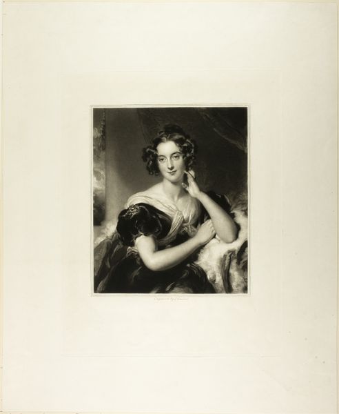 This is Samuel Cousins’ portrait of Marguerite Gardiner, the Duchess of Blessington. During the 19th century, portraiture was an important tool for constructing and communicating identity, especially among the elite. Gardiner was a writer and social hostess, which allowed her to occupy a unique, powerful position in society. Cousins’ portrait captures her poised at the intersection of aristocratic luxury and intellectual life, reflecting her unconventional role. While the portrait aligns with the conventions of the time, showing her beauty and status, it also hints at her individuality. Her gaze is direct and engaging, suggesting self-awareness and confidence. Portraits like this not only captured the likeness of an individual, but also helped to shape their public persona and legacy. It leaves us to consider the duchess’s own sense of self, and the degree to which it aligned with her representation.
