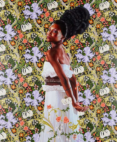 This portrait of Kancou Diaonno was made with oil paint by Kehinde Wiley, who was born in 1977. Wiley builds his paintings from a process of layering, combining the tradition of portraiture with decorative patterns, a real push and pull between foreground and background. The oil paint seems to have been applied in both thin glazes and opaque layers, creating a play of light and shadow across the sitter's face and shoulders. Look at the top of her left shoulder, here the floral decoration seems to sprout from the darkness of her top and onto her skin, a subtle but powerful motif of growth and resilience. Wiley’s work reminds me of Chris Ofili. Like him, Wiley is interested in the tension between different cultural traditions, mixing the visual language of classical painting with that of contemporary Black culture. It’s a bold and exciting conversation, one that refuses easy answers and embraces the messiness of identity.