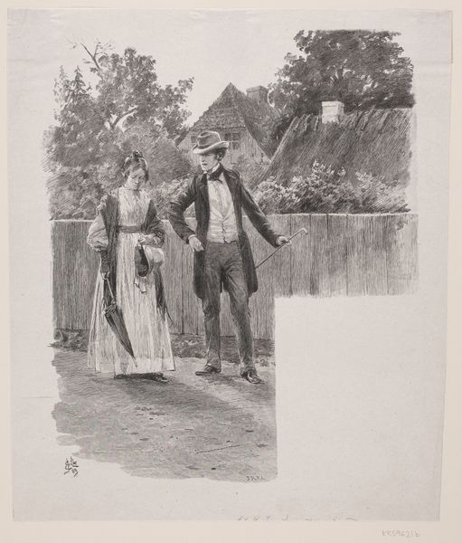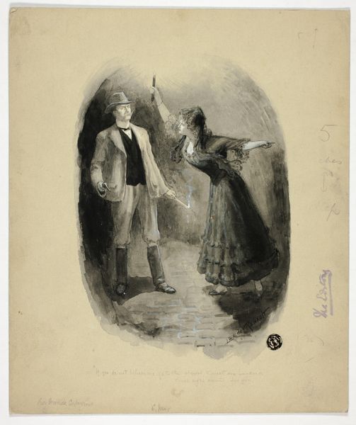 Editor: Winslow Homer’s 1869 print, "Weary and Dissatisfied With Everything," depicts a woman and a man standing outdoors at night. She’s looking up at him with what reads to me as a challenging stare. What are your thoughts on this work? Curator: It’s interesting to consider this image in its historical context. Published in *The Galaxy*, a popular magazine, it's meant to depict a specific social interaction. Knowing this, how might the title play into the reception of the image by its 19th-century audience? Editor: That’s a good point. With a title like “Weary and Dissatisfied With Everything,” readers might be primed to see a commentary on courtship or social expectations. Perhaps this young woman represents a broader societal malaise? Curator: Exactly. Homer was acutely aware of social dynamics and class distinctions. The woman’s elaborate dress suggests a certain social standing, yet her expression hints at something beyond mere superficiality. Consider the role of publications like *The Galaxy* in shaping public opinion and reinforcing or challenging those social hierarchies. Editor: So, by publishing this image, *The Galaxy* wasn’t just entertaining readers, but also engaging in a subtle form of social commentary. Curator: Precisely. And the image gains resonance by mirroring real social tensions. Think about the economic anxieties following the Civil War, or the changing roles of women. Are those echoed in this illustration? Editor: I see what you mean! Seeing it this way highlights how artworks are always communicating ideas about society, intentionally or not. Curator: Precisely. And examining those visual and social clues brings the art alive! Editor: That really does add another layer to the work. Now I’m thinking differently about magazine illustrations, which I assumed were just decorative. Thank you.