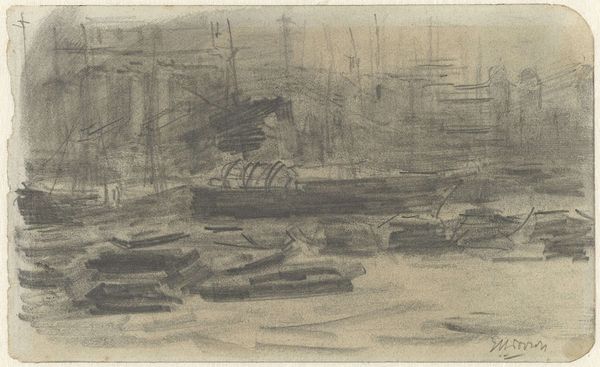 Curator: John Marin’s "Untitled," a watercolor and drawing piece, immediately strikes me as ethereal. There’s a lightness, an almost ghostly presence to the cityscape rendered in washes of color. Editor: It's undeniably atmospheric, yes, but I see a directness in the application. Notice how the medium itself – watercolor, traditionally aligned with amateur pursuits or preparatory sketches – is pushed to its limit here. Marin wrestles a robust scene from delicate stuff. Curator: Robust, perhaps in its representation of urban life, but consider the floating shapes, the merging of structure and sky. Doesn’t that dissolving quality reflect the impermanence, the ever-shifting nature of the modern city itself? There's an implied symbolic weight here. Editor: I'd agree there is a focus on how such scenes are actively perceived. However, I question whether focusing exclusively on "symbolic weight" moves us further away from engaging with the labor involved, the industrial processes hinted at within these spaces and how they affected its reception and place within the history of art. Curator: But doesn't the abstraction, that deconstruction of form, act as a visual metaphor for the anxieties of modernization? Those hazy outlines suggest instability, a collective unease… the same kinds of concerns about technological advancement, maybe? Editor: Perhaps, but let’s not disregard how the availability and affordability of materials such as paper and watercolor paints impacted Marin’s approach. He wasn’t necessarily shying away from "high art" techniques out of unease, but maybe because the rise of industrial pigment production made watercolor a commercially viable and popular choice! Curator: All good and valid points! Looking at it again, it almost acts as a visual palimpsest – layered memories superimposed upon a rapidly evolving landscape. Editor: Yes, like those layered and textured posters we now find aesthetically pleasing on the sides of the oldest buildings in our modern world, but really represented past modes of capitalism. Curator: A compelling way to consider it. Marin offers not just an image of a city, but a contemplation on constant reinvention. Editor: Absolutely. We get a beautiful representation of those physical tensions caused by material means of production in flux.