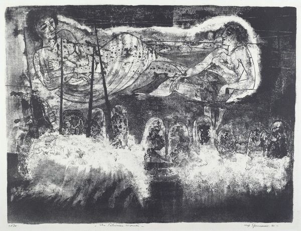 Benton Spruance made this lithograph, Citizen, without a specified date, approaching the stone with what looks like crayons, pencils, and a real feel for mark-making. Look closely, and you'll see the velvety blacks and the way he scratches back into them, creating highlights and textures, a real process. It's all about the push and pull, the layering of tones, the way he builds up the image from dark to light. There is an amazing contrast between the dense foreground figures and the ethereal figures in the middle ground. Each figure is rendered with attention to shading and form, yet the overall effect is one of dynamic movement and emotional intensity. It reminds me of some of the work of Kathe Kollwitz, who also understood the power of black and white to convey complex emotions and social commentary. Spruance shows us that art isn't just about capturing a likeness; it's about expressing something deeper, something that words can't quite capture.
