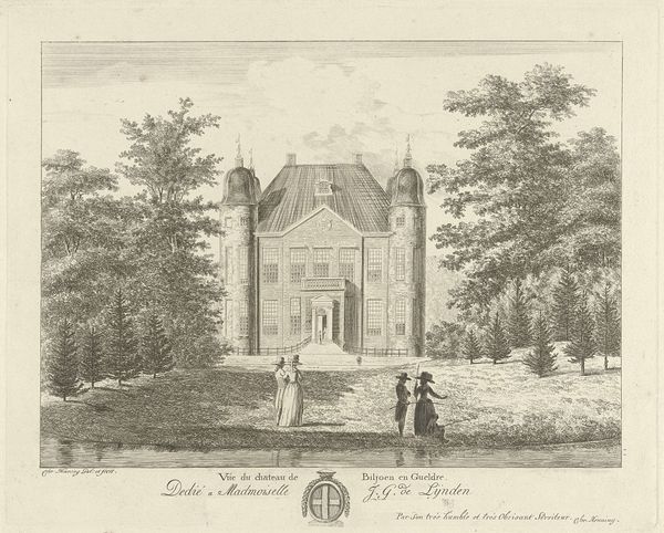 Curator: Currier and Ives' "Sunnyside," dating back to 1860, offers a fascinating glimpse into 19th-century American landscape art through the lens of watercolor. Editor: Wow, it has such a fairytale quality. I feel like any moment a princess will peek out of one of those ivy-covered windows. There's an almost dreamy peacefulness to it, doesn't it strike you that way? Curator: Indeed. Observe how the composition meticulously arranges natural and architectural elements, establishing a carefully calibrated interplay between form and space. Note the subtle gradation in the atmospheric perspective. Editor: It makes you wanna kick off your shoes and just wander down that path, doesn't it? Even the way the light filters through those trees on the left feels...inviting, like it is saying: "come sit with me here for a while." Curator: It’s a study in contrasting textures and lines. We have the organic fluidity of the foliage juxtaposed with the geometric precision of the manor. Semiotically, this tension reflects humanity’s complex negotiation with nature, attempting control and harmony simultaneously. Editor: True! Although I love how the whole thing isn’t too precise; the artist kind of blurs the lines… giving everything a softened, idealized edge. It almost shields you from reality… if only for a brief, artistic moment. Curator: That effect stems, in part, from the choice of watercolor—its transparency and blending capabilities serve to unify the disparate components into a cohesive visual narrative. Editor: Yeah! This one whispers… not shouts. Thanks for spotlighting it for us, I am glad we got to wander into its world for a bit. Curator: The interplay of structural rigor and emotive representation offers a fertile space for further interpretations and sustained art historical discourse.