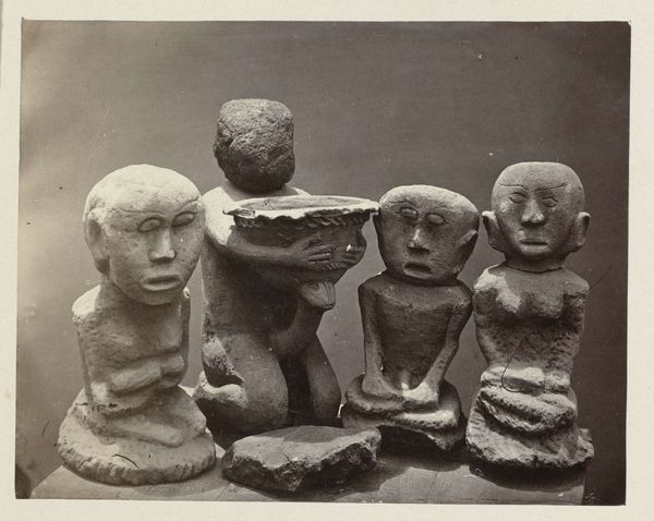 Editor: This photograph by John Piper, taken at an unrecorded date, captures a carved stone column, probably part of a church or other ancient structure. The way the stone is weathered makes me wonder about the labor required to carve it. What does this image say to you? Curator: I see an interplay between the material and the social. Consider the stone itself – where did it come from? Who quarried it? And what about the carvers? Were they local artisans or part of a larger, perhaps even exploitative, system? These questions refocus our attention onto the conditions of its creation. Editor: That’s fascinating. I hadn't considered the source of the stone, but now it feels like a crucial element of understanding the artwork. Curator: Exactly. By examining the materiality and the labor involved, we gain a richer, more critical perspective on this historical artifact. Editor: I will definitely think differently about artwork now!