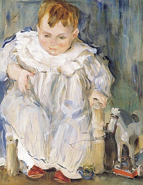 Egon Schiele painted this seated child with oils, but the date of its making is currently unknown. Look closely at the backdrop, you can see how Schiele applied paint in these thick horizontal strokes, like he was building a wall with color. This method feels very intuitive and process-based, much like my own painting process. I'm drawn to the way he captures the essence of childhood vulnerability through the child's wide-eyed gaze and slightly awkward posture. The paint is applied thickly, almost roughly in places, which adds to the raw emotional feel of the work. I notice how the muted color palette creates a sense of melancholy. Look at the child's hands. See how they clasp a small object, maybe a flower? The detail and attention to the hands stands in contrast to the rest of the painting, making the hands stand out. Schiele's mark-making resonates with that of Gustav Klimt, his mentor and friend. And, like Klimt, there's a sense of exploring inner states through external representation, something that continues to fascinate artists today.