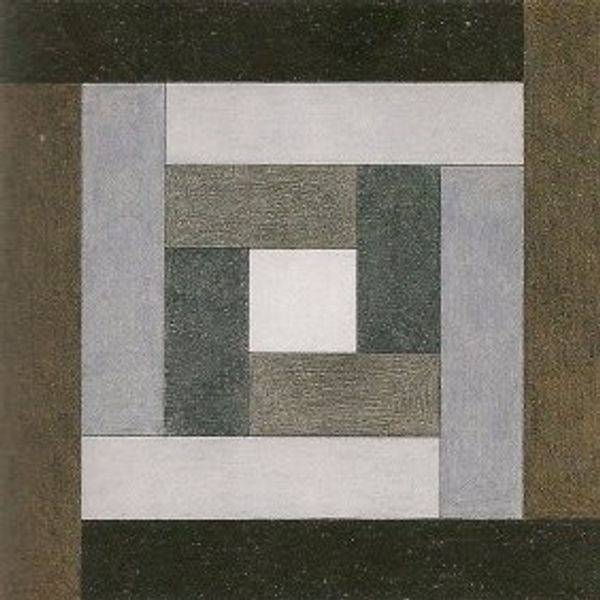 Theo van Doesburg created this painting, titled Composition, using oil on canvas. At first glance, it seems to be a straightforward arrangement of black, white and ochre rectangles. But look closer, and you'll notice the careful application of paint, the slight variations in texture. Van Doesburg wasn't just slapping color onto a surface; he was thoughtfully building up layers, allowing each hue to interact with its neighbors. There’s also a kind of labor present here. Not the obvious kind, like a potter wrestling with clay, but a mental labor, of careful planning and execution. In its own way, this is as skilled a performance as any virtuoso display. It prompts us to ask what kind of work counts as "real" work. Is it only manual labor, or can intellectual effort also be considered a form of making? Ultimately, this painting invites us to reconsider our preconceptions about art, skill, and the value of different forms of labor. It challenges us to look beyond the surface and appreciate the thought and effort that went into its creation.