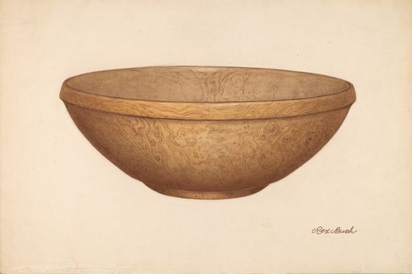 Editor: Here we have Agnes Karlin's "Bowl", a watercolor drawing created sometime between 1935 and 1942. There's something so gentle and humble about this piece. It feels very quiet. What speaks to you when you look at this, Professor? Curator: Quiet is perfect! The bowl—a humble object rendered with such care and delicacy in watercolor, speaks volumes to me. There is the quiet observation of everyday beauty, of the poetry in the mundane. Karlin gives this vessel—an object that contains and nourishes us—a sort of quiet dignity, don’t you think? Look at how she considers different angles and how precise the line work is. Editor: I see what you mean about dignity! It also looks like there might be other iterations in the top corner and on the bottom left. Is she showing all of the angles, or is there something else to it? Curator: You’ve spotted something brilliant! The bowl becomes almost like a symbol, contemplated from multiple perspectives. To me it evokes themes of perspective and consideration of an ordinary subject that suddenly transforms before us, into something truly worthy of a gaze and perhaps much deeper investigation. What stories might this bowl tell, I wonder? Perhaps of warm meals shared or quiet moments of reflection? Editor: I didn’t even think of that! It's amazing how she elevates something so simple. The three bowls remind me that there are several sides to a simple story. Curator: Precisely! Agnes prompts us to seek out the hidden stories in the quietest corners of our lives. To find art in the everyday. To give the mundane an angle, light and an alternative context!