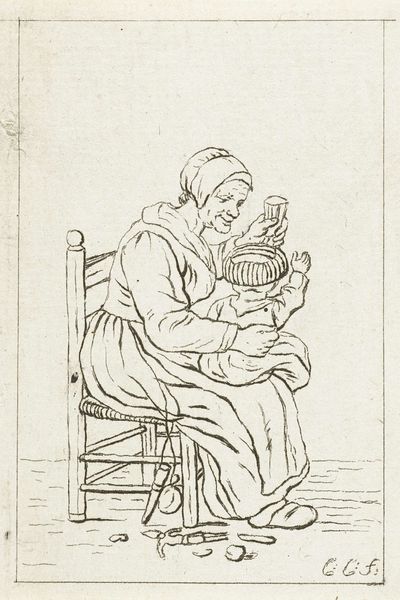 This print, ‘Standing Woman with Child in Arms,’ was made by Pieter de Mare sometime before 1796, using etching on paper. Look closely, and you’ll notice the image is built up from a mesh of fine lines. With etching, a metal plate is coated with a waxy substance, and the artist draws through the wax to expose the metal. When the plate is dipped in acid, it bites away at these lines. The plate is then inked and printed. The resulting image has a directness, even an intimacy. De Mare’s image depicts a common subject, a mother and child, and in that sense, it’s quite different than the grand history paintings that were prized at the time. It has the quality of a quick sketch, a fleeting glimpse of everyday life. Prints like this one are important because they show us the other side of the 18th century. This was an era of enormous social change, including the rise of a new middle class with its own aesthetic interests. By valuing prints like this one, we expand our understanding of art history beyond the traditional focus on unique, high-status objects.