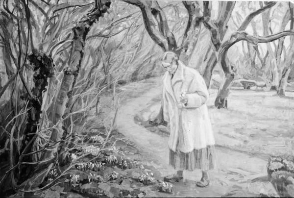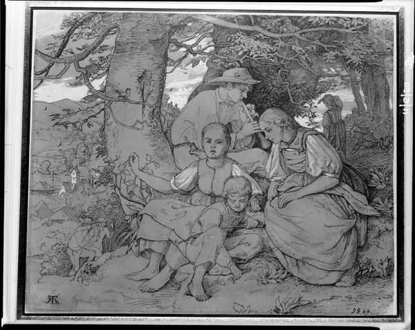 Curator: Here we have "Maiden in Bird Form", a charcoal drawing by Joakim Skovgaard, dating back to 1895. It resides here at the SMK, the National Gallery of Denmark. Editor: It strikes me as both delicate and unsettling. The figure of the maiden feels very grounded and almost traditionally rendered, while the bird emerging above seems ripped from a dream, and casts the entire piece with a tone of surrealist fantasy. Curator: Indeed. Skovgaard was deeply engaged with the symbolism of Romanticism. We must consider the socio-political conditions when viewing this, just as we should view how he draws on both traditional and emerging aesthetic movements. One can almost see anxieties surrounding shifting societal norms in the fantastic, perhaps an apprehension towards radical transformations within the Danish cultural fabric. Editor: I am drawn to the sharp contrasts. The texture of the charcoal allows for such dramatic chiaroscuro, defining the forest depths and the soft lines of the figure's face. Notice how Skovgaard meticulously renders each leaf, enhancing that textural interplay with the smoother surface of the maiden's skin. Her gaze pulls us into the forest with a mixture of invitation and trepidation. Curator: Precisely! Her averted gaze and gesture certainly evoke introspection and a degree of resistance. Art production like this acted as a stage upon which complex dialogues took place within a context undergoing immense change. Skovgaard was actively participating in shaping perceptions around these very changes. It would be very narrow to view "Maiden in Bird Form" without the Danish socio-political and institutional history he operated in and the reception it had. Editor: True, but it's also hard to ignore that the charcoal's materiality lends itself beautifully to depict the earthy, somewhat mystical ambiance of the Nordic forest. The piece invites a quiet reflection; it is formally intriguing to engage with its balance of stark tonality and almost dream-like, visionary themes. Curator: An ambiance that reflects Skovgaard's milieu while still questioning it! Thinking about that helps one appreciate the complex forces at play here in Danish culture and the institutions of its reception during its period. Editor: And with that, we find ourselves peering ever more intently at the intersection of visual art, inner visions and larger society.