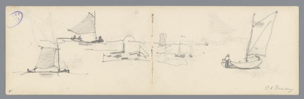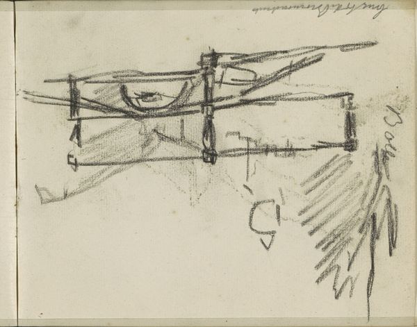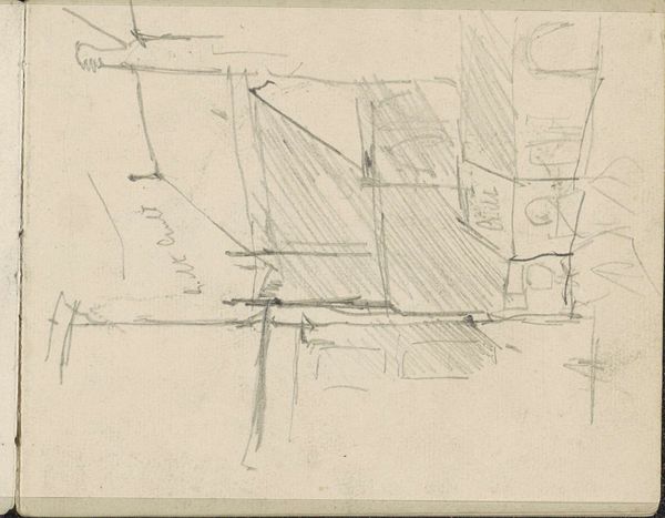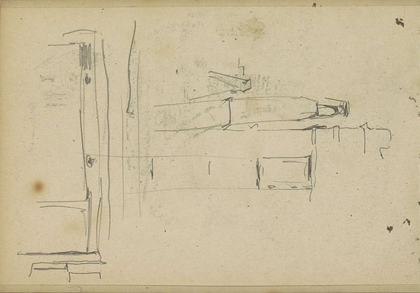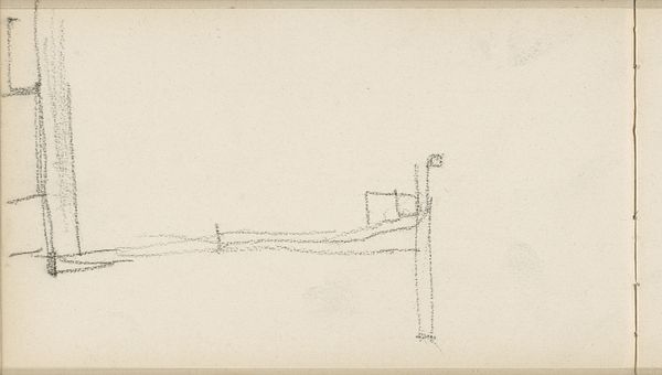 Editor: Here we have a quick pencil sketch, “Studie, mogelijk van een kar op het strand” - that's "Study, possibly of a cart on the beach" – by George Hendrik Breitner, dating from around 1880 to 1882. It’s interesting to see such a fleeting impression captured on toned paper. It feels almost like a forgotten note. What strikes you most about this little drawing? Curator: The power in this sketch lies precisely in its ephemeral quality. Think of Breitner operating in a rapidly industrializing Amsterdam. How might a sketch like this have functioned as a subversive act, prioritizing subjective experience over academic precision in a society increasingly obsessed with demonstrable progress? Editor: That's a great point. I hadn't considered it as a potential counter-narrative. Do you think his choice of subject – seemingly mundane, everyday life – plays into that? Curator: Absolutely. Breitner's focus on ordinary subjects – a cart on the beach, for example – challenges the prevailing artistic conventions of his time, which favored grand historical or mythological scenes. It's a quiet form of rebellion. Where would the everyday citizen see this today, in the late 20th, early 21st century? Would such rapid sketching on urban life or transport have similar societal impact? Editor: I can see that in his capturing of urban life or his work showing movement. Thinking about Breitner focusing on fleeting moments also opens the door to discussions around how artistic practices evolve and mirror changing social values. Curator: Exactly. And considering where this sketch lives, in the collection of the Rijksmuseum, it begs the question: How does the institutional context influence our understanding of what constitutes “art” and whose stories get told? Editor: I think this small pencil drawing opens up interesting discussion about artistic intention, societal values, and the role of institutions in shaping those things. Thanks for your perspective! Curator: My pleasure. It's always revealing to look at even a quick sketch like this as a reflection of broader cultural currents and political dialogues.