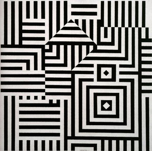 Victor Vasarely, a key figure in the Op Art movement, made "NB 22 CAOPE," a piece that embodies the spirit of its time. In the mid-20th century, geometric abstraction became a powerful language for artists who were trying to grapple with the complexities of a rapidly changing world. The rigid grids and contrasting black and white circles create a sense of pulsating movement, reflecting the dizzying pace of technological advancement and urbanization. But the experience of viewing this work is more than just optical trickery. It evokes a sense of disorientation, questioning our understanding of space and perception. Vasarely's work invites us to consider how our identities are shaped by the environments we inhabit. Ultimately, "NB 22 CAOPE" serves as a reminder of the power of art to challenge our assumptions and broaden our perspectives.