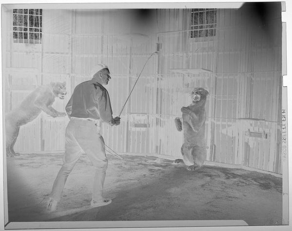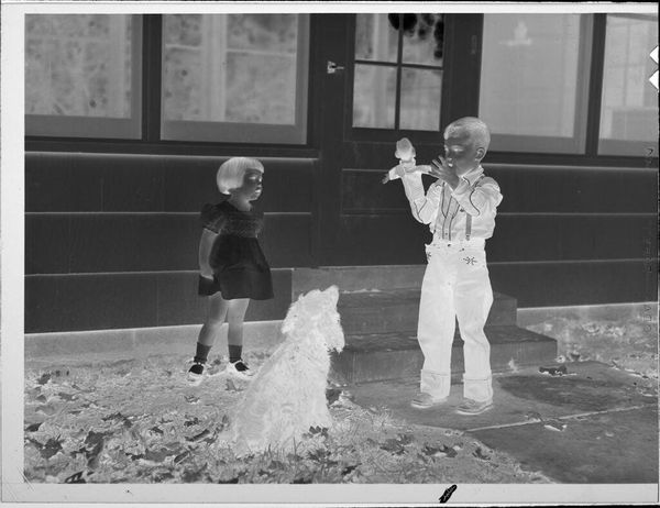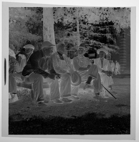 Editor: So, this is an untitled photograph, "boys playing ice hockey" by Lucian and Mary Brown. The inverted tones give it a ghostly feel. What captures your attention most about this winter scene? Curator: It's like peering into a memory, isn't it? The lack of a specific date makes it timeless, yet the fashion seems to ground it. I wonder what those figures in the background are doing? Are they watching, or just passing by? Editor: That's a good question...maybe it captures a communal moment, not just the hockey game. Curator: Exactly! Art is a mirror reflecting our own questions, wouldn't you agree? Editor: Definitely! I'll be thinking about what's beyond the frame for a while.