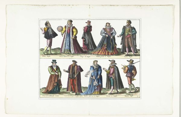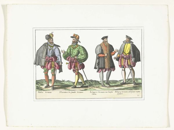 This print, made around 1580 by an anonymous artist, depicts three men and a woman dressed in the German fashion of the time. Its materials—paper, ink, and pigment—were relatively common, but its creation involved a specialized division of labor. Engraving was the primary process, demanding the skill of a trained artisan to translate the original design onto a metal plate. From there, the printing process could be repeated, making multiple impressions. This allowed for the relatively widespread distribution of fashion trends. The added colors, likely applied by hand, would have been another layer of work. Consider the immense labor involved in producing the clothing depicted. The wool and linen required farming, spinning, and weaving. Dyes would be extracted, and painstaking tailoring executed. The fur trim signified status, as did the very act of keeping up with the latest styles. By examining the materials and making of this print, we appreciate its value as a record, not only of fashion but of the social and economic systems that made it possible.
