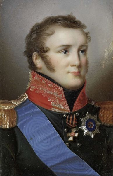 Editor: Here we have "Portrait Of Colonel Auguste-Frederic-Bon-Amour, Marquis De Talhouët" by Horace Vernet, a painting depicting a stately gentleman in military garb. I’m struck by the contrast between his elaborate uniform and the suggestion of a battle scene in the background. What’s your take on it? Curator: It’s fascinating to consider this portrait through the lens of power, class, and representation. Vernet’s portrayal of the Marquis naturalizes a very specific vision of French aristocracy during a period of immense social upheaval. How does the Marquis’s detailed attire – all those buttons and tassels – function as a signifier? Editor: It screams status, wealth, privilege… a sort of...visual barrier, perhaps? Curator: Precisely. The clothing can be read as a form of symbolic capital, reflecting a system where social status is not merely inherent, but meticulously constructed and performed. Consider the historical context: Did the rise of Napoleon change the rules regarding inherited status, or simply change who could access its symbols? And how does this image serve to reinforce or challenge that changing social order? Editor: I hadn’t considered the Napoleonic influence. So, it’s more than just a picture of a rich guy? Curator: It's about how wealth and power visualize and assert themselves during times of social and political transition. The Marquis is essentially selling an idea of established order as it responds to very material shifts in power dynamics. He's participating in a theatre of power, using the canvas to reiterate established social narratives, whilst war and political re-shaping occur on the fringes. Editor: I see what you mean. Thanks, it definitely changes how I see it! Curator: Glad to bring a new dimension to your thinking about portraiture.