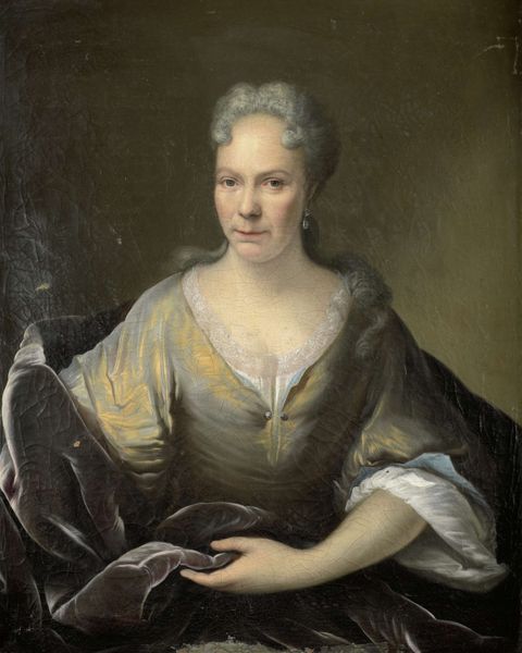 Editor: Here we have a portrait, likely painted between 1735 and 1745, of Anna Sybilla von Holzhausen, n\u00e9e zum Jungen. It's an oil painting, currently residing at the Städel Museum. The fabrics and materials depicted feel incredibly important in conveying her status. How should we be interpreting them? Curator: The portrait certainly emphasizes the material world. Consider the artist's process: grinding pigments, layering paint to mimic the sheen of silk and the dull gleam of jewels. These were commodities, bought and traded, and this portrait functions as another material object signifying status in a market-driven society. Do you notice the specific folds and drape of the fabrics? Editor: Yes, there's a real attention to detail there, especially in how the light catches those folds. Curator: Exactly. The rendering isn't just about capturing likeness, but about showcasing wealth acquired through trade, labor, and, quite likely, exploitation. Consider the social conditions necessary to produce these luxury items – the global networks involved in the trade of silk and precious metals. What stories do these objects tell about that process, beyond just celebrating the sitter? Editor: That makes me think differently about portraiture. I hadn’t really considered the global forces that enable even something as seemingly simple as the sitter's clothing. Curator: It is, after all, more than mere appearance. It is a commodity fetish come to life. Editor: So much to think about regarding the role of materials and production. Thank you for shifting my perspective. Curator: A Materialist approach simply tries to find tangible value behind it all, unveiling a world of its making.