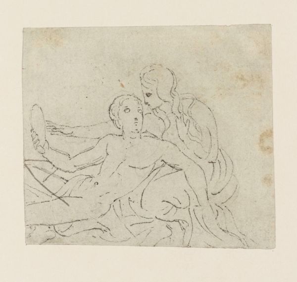 Frederic Leighton sketched "Cupid and a Shepherd" with graphite, capturing a pastoral scene laden with classical symbolism. Cupid, the winged god of love, hovers near a shepherd crowned with laurel, a symbol of victory and status harking back to ancient Greece. Consider how Cupid, often depicted as a mischievous child, evolved from Eros, the primordial god of desire. This transformation reflects a softening of raw, uncontrollable passion into a more playful, albeit still potent, force. The shepherd, a figure of bucolic simplicity, represents a life close to nature, an existence free from the complexities of urban life. This pairing may evoke subconscious desires and memories tied to love, innocence, and the yearning for a simpler existence. Leighton masterfully engages these archetypes, creating an image that resonates with viewers on a profound, emotional level. The circular composition reinforces the cyclical nature of love and life itself, echoing through art history and resurfacing in new forms.