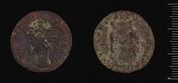 Curator: Here we have an Antoninianus of Gallienus, currently residing in the Harvard Art Museums. Editor: The stark contrast between the dark metal and the incised details immediately strikes me; it's quite haunting. Curator: Indeed. Coins such as this offer a fascinating lens through which to examine the socio-political climate of the Roman Empire. Gallienus ruled during a time of immense crisis, and this coin served not only as currency but also as propaganda, asserting imperial power. Editor: I'm drawn to the formal elegance of the bust. The clean lines, despite the coin's worn state, create a powerful, symbolic representation of authority. Curator: The imagery was carefully controlled. Coinage was the primary medium through which the emperor's image and message were disseminated to the masses. Editor: This coin is more than mere currency; it embodies an era. Curator: Precisely. It invites us to reflect on themes of power, representation, and the enduring nature of human ambition.