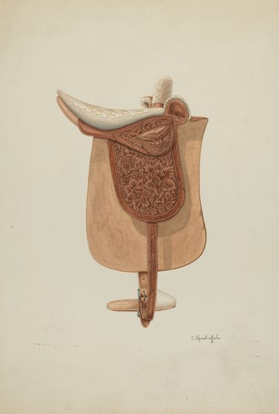 Harry Mann Waddell made this rendering of a side saddle in the California style, using watercolor, ink, and graphite. What strikes me most is the contrast between the highly finished areas and the parts that are barely sketched in. It’s like the artist is showing us his working process, or maybe he just got bored halfway through. Look closely at the tooled leather of the saddle flap. The stitching and the way the light falls across its surface give it a real sense of depth and volume, while the sketched-in pommel and stirrup seem to float in the background. The number '255' is printed on the pommel, perhaps an inventory number from a catalogue or manufacturer’s record. This piece reminds me a little of the work of Vija Celmins, who also made highly detailed drawings of everyday objects. But where Celmins is all about precision and control, Waddell seems more interested in the sheer pleasure of mark-making, embracing the unfinished, and suggesting a world of possibilities.