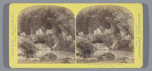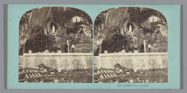 Curator: This albumen print captures a slice of Berlin's history: S.P. Christmann’s photograph, likely taken between 1869 and 1890, showcases the freshwater section of the Berliner Aquarium, as seen from the aviary. Editor: Immediately, I am struck by how meticulously artificial the natural world seems. The grotto-like structures and subdued lighting evoke an atmosphere that is at once theatrical and haunting. It’s a captivating tableau of fabricated wilderness. Curator: You know, aquariums like this one were enormously popular during that period. They became a crucial way to educate the public about natural history and colonial encounters with new worlds. The display isn’t simply showing nature; it's crafting an experience, one deeply enmeshed with public edification and, honestly, empire. Editor: Yes, there’s a strong element of staged exoticism. That meticulously constructed rocky facade almost mocks the natural erosion that carves out true grottos. What seems like nature is essentially architectural and scenographic! It invites contemplation about how we’ve sought to categorize and capture nature within a very specific, controlled lens. Curator: Absolutely! And if we observe the albumen print process here—it was chosen to be readily reproduced and consumed, signifying photography's power to render the exotic "knowable" for the growing middle class. The multiple images further invite you to step into the three-dimensionality of the scene. Editor: True, there’s something particularly powerful about witnessing the staged scene from the perspective of an aviary. Is the viewer observing nature? Or are they being observed by it? The blurring of lines suggests an interplay of captivity and spectacle that I believe reveals far more than just an architectural space; it shows our human need to curate the world. Curator: Considering all the political, socio-economic dimensions that can be excavated from what we have just been talking about – its pretty stunning work isn’t it! Editor: Definitely! In delving into this constructed slice of history, my initial impression transforms into an understanding of staged landscapes and social reflections from the 19th century!