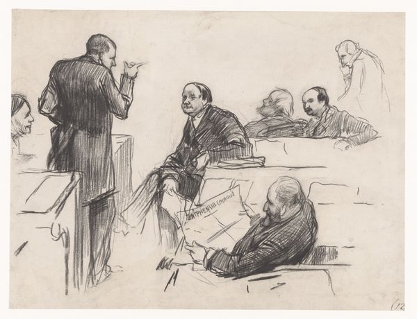 Henri de Toulouse-Lautrec made this drawing, Dupas Deposition, with graphite on paper. A traditional material, but used here for something other than a traditional portrait or landscape. Instead, we see a courtroom scene, sketched with an immediacy that speaks to the ready availability of paper and pencil. Look closely at the varying pressure of the pencil strokes, from the bold outlines of the figures to the light shading that suggests depth and volume. Toulouse-Lautrec skillfully captures the character of each individual, from their facial expressions to their clothing. The artist gives us the bare minimum of descriptive information but manages to convey the scene’s psychological tension. The medium of graphite on paper lends itself to the capture of fleeting moments and candid observations. In this case, the artist's skilled hand and keen eye transform a simple sketch into a powerful commentary on justice, power, and the human condition. It’s another reminder that “drawing” can mean much more than just a preparatory stage for painting or sculpture.
