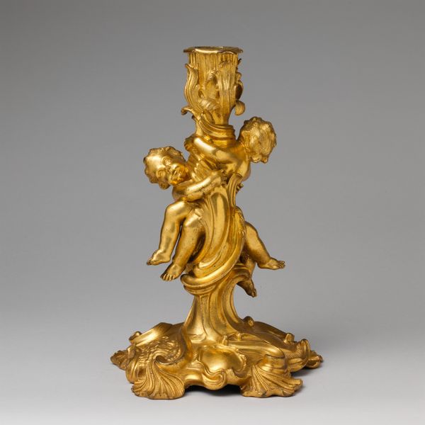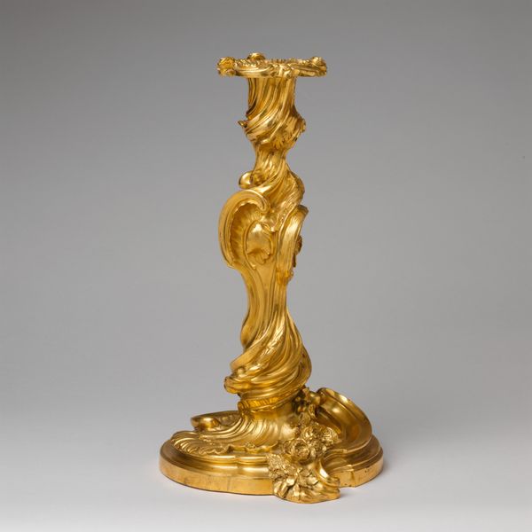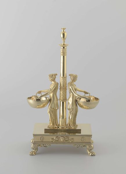 This gilded bronze candelabrum was created by Alexis Decaix, around the early 19th century, during the height of the "Egyptomania" craze in Europe. Following Napoleon's Egyptian campaign, there was a surge of European interest in ancient Egyptian imagery and aesthetics. This candelabrum embodies this fascination, borrowing motifs like stylized lotus blossoms and sphinxes, and reinterpreting them through a European lens. Consider how this object reflects the complex power dynamics of cultural appropriation. The candelabrum transforms Egyptian symbols into decorative elements for European elites, entwining the allure of the exotic with imperial ambition. Its luxurious design and craftsmanship speaks to the privilege and wealth of its intended audience. The warm glow of candlelight, cast by this object, would have illuminated a world of social gatherings and intimate moments, subtly reinforcing the status of its owner within the grand narrative of European dominance.
