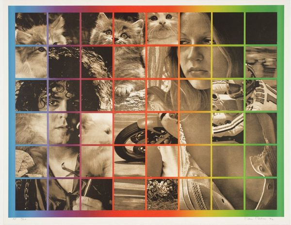 Curator: Let’s take a look at Alighiero Boetti’s textile piece, "Alternando da 1 a 100 e viceversa," created in 1977. At first glance, it may seem like a simple geometric abstraction. Editor: Woah, there's something so satisfying about this. It looks like a corrupted checkerboard! But playful... like some beautiful pixelated game about to start. There's such a sense of movement despite the simple squares and numbers hidden within. Curator: Indeed. Boetti frequently engaged with systems and order, often disrupting or questioning them. The numbers, ascending and descending, reveal a fascination with the tension between order and chaos, concepts which align with the tenets of Arte Povera and postminimalism art movements in which Boetti participated. This work becomes a kind of playful investigation into systems of knowledge and how we perceive them. Editor: Mmm, I can totally get that—it feels almost subversive to disrupt something so familiar, like a checkerboard. And using a textile makes it unexpectedly domestic... cozy even. It warms up what might be cold conceptualism. Curator: Precisely. It’s not merely a conceptual exercise. It's hand-crafted. Look at the vibrant lettering around the border, so evocative of the late 70s. The material presence, especially with the use of weaving and bright color, transforms intellectual rigor into a thing of beauty. Editor: Totally. There’s a looseness that humanizes the rigidity. It’s kind of like, if numbers could dance! Also, knowing this was created during a turbulent time in Italy, with societal unrest and challenges, gives it a poignant edge, like, can we find rhythm even when everything feels chaotic? Curator: Boetti saw this back and forth as a representation of continuous and generative social processes. It serves as an optimistic representation that in every established order exists a degree of instability, and perhaps, possibility for the unexpected to emerge. Editor: Makes you wonder what disruptions we might create... Beautiful! Well, I for one, would totally hang it on my wall. Or snuggle up with it on a cold winter's night! Curator: Yes, it's definitely food for thought in beautiful disguise. Thank you.