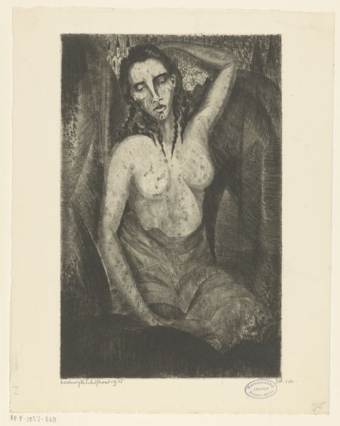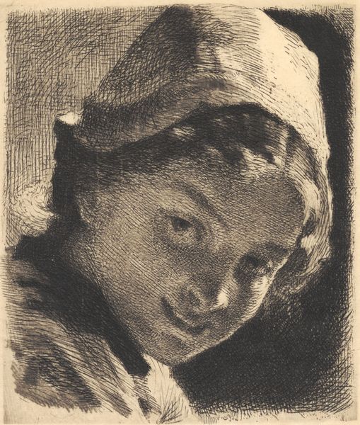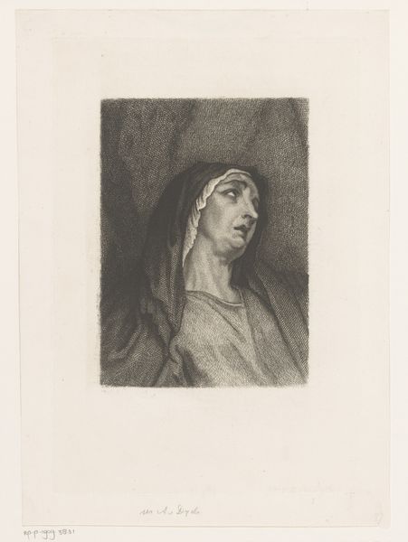 Curator: Johann Lorenz Haid created this drawing, "Portret van een onbekende jonge vrouw", sometime between 1712 and 1750. It’s rendered in charcoal on paper. Editor: She seems wistful, almost melancholic, yet there’s a lightness in her gaze. I’m struck by how skillfully the charcoal captures the softness of her skin. Curator: Notice the strategic use of chiaroscuro. The artist expertly manipulates light and shadow to model the form, giving it a remarkable sense of depth. Consider also the compositional elements—the slight tilt of her head, the placement of her hand; they contribute to the portrait's overall grace. Editor: And think of the production of charcoal itself – burning wood, controlling the process to get that even, dark medium. The availability and preparation of the charcoal influenced what he could create, literally shaping the artistic output. How accessible was paper, who produced it, who was this labourer behind it? The means of representation here hinge on such access. Curator: Indeed, but the pure representational qualities speak volumes. The artist creates a visually arresting image simply with stark tonal gradations against the white ground, forming not just likeness but a presence, don't you think? Her personality shines through; even with the use of minimal values, we discern a Rococo charm through the soft blending and her delicately rendered features. Editor: Yes, but her charm wasn’t magically suspended in a formal vacuum. From paper sourcing to tool craft, the societal mechanisms underlying his methods allowed Haid to craft a convincing upper-class charm through charcoal, itself a material byproduct transformed into a representation, almost erasing labor. Curator: I find myself contemplating the inherent beauty of this artwork; its balanced and refined composition speaks to enduring artistic principles. Editor: Agreed, and in looking closely at its creation, it’s clear how embedded that apparent effortless elegance is within a material history that demands closer attention, from extraction to consumption.