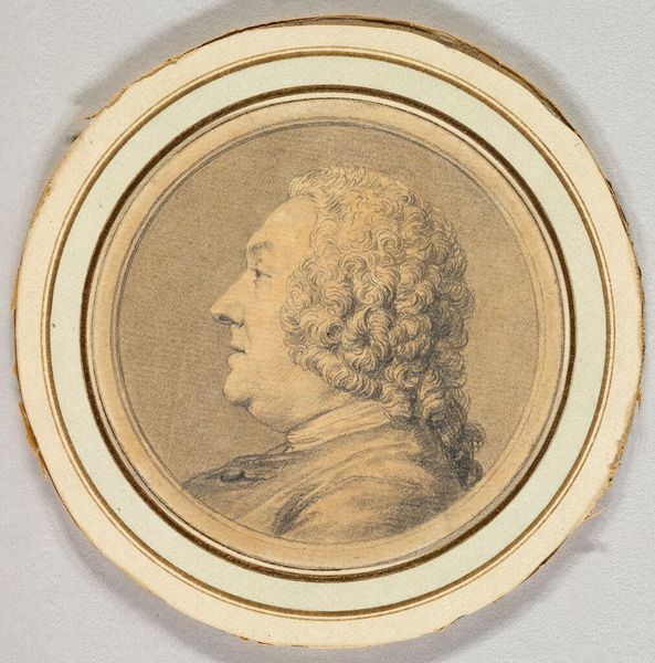 Curator: The overall effect is striking. This piece whispers of history. Editor: Indeed. Before us is Louis Roland Trinquesse's "Portrait of François Reidy de Lagrange," an engraving dating from between 1786 and 1799. What catches your eye first? Curator: The severity. He seems…stiff. There's something about the perfect line of his jaw and the way the powdered wig sort of froths, but it feels more like a declaration than an expression. Editor: Neoclassicism valued order above all, and this portrait reflects that socio-political sentiment perfectly. The French Revolution was happening right in the middle of this portrait's execution. Curator: You know, thinking of revolution, and how that must have informed everything around this era…makes the red chalk feel less rosy and more like the dried blood that’s about to flow in the streets! Editor: That visceral response gets to how images engage with contemporary politics. It's not just about appearances, but about the social messages portraits like these transmit and to whom. Notice that while appearing relatively plain, de Lagrange is, indeed, wearing a military uniform of that time, showing him a man ready to defend his people. Curator: A romantic spin on… potential authoritarianism? Editor: Perhaps! It speaks volumes about power structures. What I love is how the very act of sitting for a portrait could be viewed as both an assertion of status and, in such turbulent times, perhaps, an act of defiance. Curator: Almost performance art! So this drawing, though seemingly simple, becomes a mirror reflecting a really complex era. Thank you for expanding my vision on it! Editor: It only underscores that historical context is just as much an ingredient to the art, and, really, helps unlock these kinds of portrait's quiet narratives.