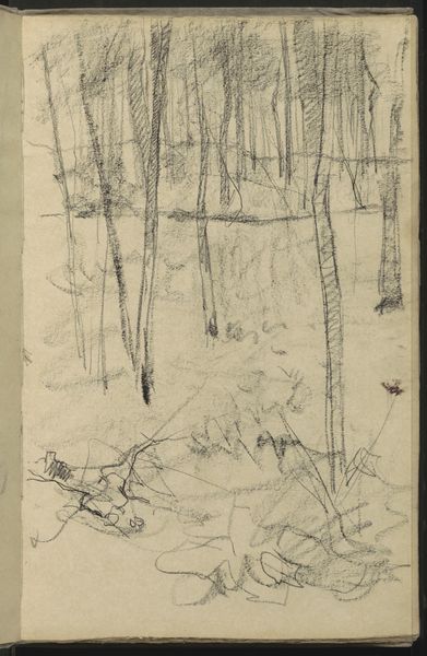 Anton Mauve sketched this landscape and the edge of a forest with a pencil, capturing nature's essence. The trees stand as silent witnesses, embodying a motif that stretches back to antiquity. Think of the sacred groves of classical mythology, places of refuge, wisdom, and transformation. In earlier times, trees were not mere elements of scenery but powerful symbols deeply rooted in the human psyche. The forest's edge, acting as a liminal space, has always signified the boundary between the known and the unknown, civilization and wilderness. This motif is a testament to humankind's complex relationship with nature, resonating with an ancient longing for harmony and an awareness of our vulnerability in the face of its overwhelming power. Notice how these simple lines evoke an emotional response, reminding us of the cyclical nature of existence and the persistence of visual motifs across time.