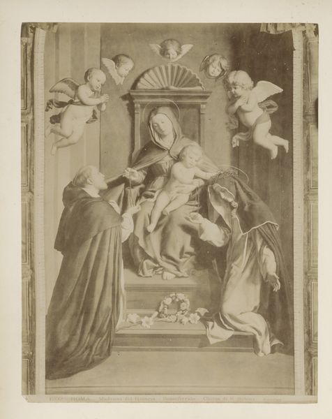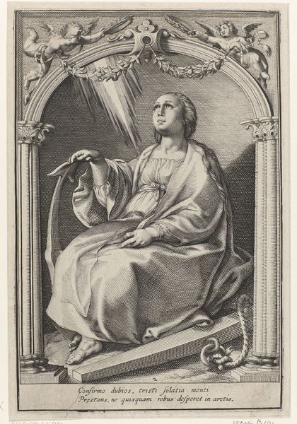 Curator: This print, dating to 1757, is entitled "The Chapel of the Enfants-Trouvés in Paris: Sainte Geneviève des Ardents" and attributed to Étienne Fessard. Editor: The linear precision really catches the eye; the way light seems to both caress and define the drapery is compelling, isn't it? I am curious to know more about this technique! Curator: Fessard was a master engraver, so it's likely this was a collaborative process with the original artist, meticulously translating a painting or sculpture into print. The labour involved, from the original artwork to the final print available for wider consumption, speaks to art production during the period. The cost was, of course, considerably lower. Editor: And it democratizes the image, giving greater access to those who wouldn't be able to afford to view a commissioned statue in a private chapel. Beyond that, this piece tells us about the cultural importance of Sainte Geneviève, particularly in Paris at that time. Her image connects deeply to themes of protection and guidance, seen also by the depiction of the lamb. Curator: That's right. The architecture of the chapel itself also becomes important to understand here. Who were the patrons? What role did such institutions have in shaping the social and political landscape? That becomes fundamental to understanding art from this period. And the prints allow this information to become more widely available for scholarly investigation. Editor: Looking closely at the architectural elements, I wonder about the artistic influences and patronage networks surrounding the construction of the Chapel of the Enfants-Trouvés itself. This image gives us the material details we need to start asking some broader socio-political questions. It encourages us to dive deeper into history! Curator: Exactly! What better lens to use than a piece such as this print, made by artisanal labor, as a lens into artistic, societal and class production as a whole? Editor: Absolutely, and for a deeper insight into Parisian devotional culture during the mid-18th century, exploring the intersection of art and history illuminated by this image is essential.