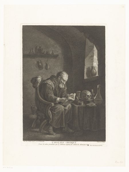 This mezzotint, titled "Seasonable Thoughts of Mortality," was made by John Dixon in the late 18th century. Mezzotint is a painstaking printmaking process that allows for rich tonal variation. To create a mezzotint, the entire surface of a copper plate is roughened with a tool called a rocker. This creates a burr that, if printed, would produce a solid black. The artist then smooths out areas of the surface with a burnisher, creating lighter tones. It is a subtractive process of working from dark to light. Consider the time and skill required to execute this technique. The labor-intensive nature of mezzotint meant that it was often used for reproducing paintings, making art more accessible to a wider audience. In this print, the skull and hourglass serve as *memento mori*, while the act of reading implies intellectual labor, all rendered through the laborious process of mezzotint. Paying attention to materials and making helps us understand the social and cultural significance of this artwork, challenging the distinction between art and craft.