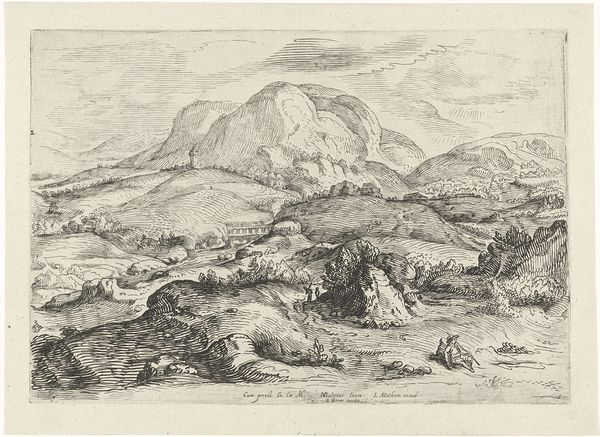 Dirk Vis Blokhuyzen made this etching, titled "View of the Highlands in Scotland," in the 19th century. This image captures more than just a picturesque scene; it reflects the era's changing relationship between humanity and nature. Consider the historical context: the 19th century was a time of rapid industrialization. Artists started depicting nature as a source of solace and escape from the growing urban squalor. Blokhuyzen's choice of the Scottish Highlands as a subject speaks to a desire for the sublime, for landscapes untouched by industrial progress. But it also reflects a changing attitude among the wealthy, who were starting to travel to the Highlands for recreation, hunting, and fishing. The image itself, with its emphasis on rugged terrain, rustic buildings and solitary figures, creates an atmosphere of both remoteness and accessibility. To understand Blokhuyzen's artistic choices fully, a historian could explore travel accounts and landscape paintings of the time, researching how Scotland was represented and consumed by a European audience. This artwork reminds us that representations of nature are always mediated by social and cultural forces.