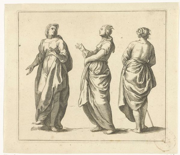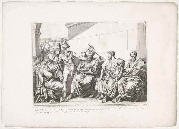 Editor: So, here we have Hans Hinrich Rundt's pen and ink drawing, "The Chinese Emperor Zunchinius Kills His Daughter," created before 1696. It’s, well, pretty dark, isn't it? What strikes you when you look at it? Curator: Oh, darling, darkness is but unacknowledged light. This isn't just grim, it’s a raw glimpse into the tangled psyche of power. See how the composition places the daughter slightly off-center? Almost as if the narrative struggles to fully embrace the horror it depicts. Do you sense that tension, that reluctant dance with brutality? Editor: I do. It feels…staged? I mean, they're posed almost like actors. Curator: Precisely! Rundt uses Baroque drama, but with a chilling twist. He is showing us a history, but he also suggests how that history becomes a theater of cruelty, almost divorced from real emotion, except perhaps the sorrow shown by the other characters in the scene. Have you ever considered how often depictions of violence in art are themselves performative? Editor: I never thought of it that way! I was too focused on the emperor and his daughter. It changes the whole story, almost makes it…about the audience? Curator: Yes, and Rundt is begging the audience to participate in what they are seeing. Not for their viewing pleasure, of course. It is their opportunity to consider this violence against innocence in society. He forces us to become complicit witnesses. Editor: That’s… a bit terrifying! It makes this piece so much more powerful than just a history lesson. Curator: Exactly! It holds up a mirror, doesn't it? Even after all this time, Rundt asks us: what stories do we tell, what brutalities do we accept, and what role do we play in their perpetuation? It is deeply haunting.