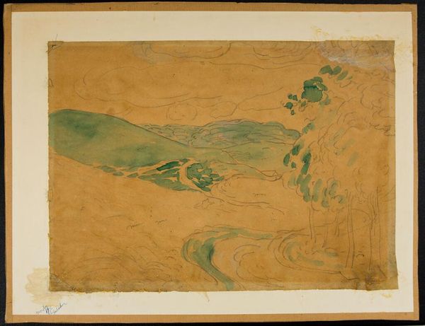This sketchbook page, "Skitser af traner og herover skitse af løvværk" by Niels Larsen Stevns, feels like a captured moment, a fleeting thought jotted down with graphite and watercolor. It's all about the process, the artist working things out, not trying to be perfect. I love the way the light green washes create a sense of depth, almost like you're looking into a forest. Then there are these darker lines of graphite that sketch out the shapes of cranes. The contrast between the fluid washes and the decisive lines is what makes this page sing. My eye keeps going back to the lone crane at the bottom. It’s so simply rendered, just a few strokes of the pencil, but it captures the essence of the bird so well. It reminds me of Cy Twombly's loose, gestural drawings. You see, in art, sometimes it's about what you leave out, not what you put in!