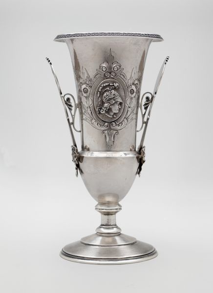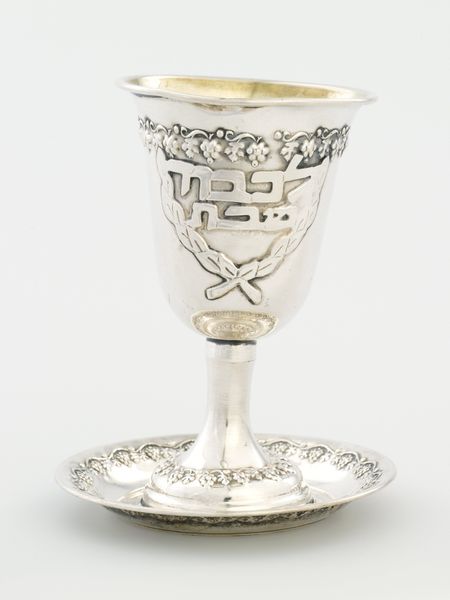 Curator: Here we have a chalice, crafted by John James Keith. Its silver material gleams even now. Editor: My first impression is one of austere elegance. The craftsmanship is apparent, but there's also a severity in the design. Curator: Note the inscriptions around the cup and the intricate design in the middle of the stem. Consider the labor involved in shaping this precious metal, reflecting the social values placed on religious objects. Editor: Absolutely. The use of silver itself positions this chalice within a specific socio-economic context. Who commissioned it? What rituals was it intended for? These questions speak volumes about power, religion, and representation. Curator: Indeed. It’s a testament to the enduring allure of expertly manipulated materials. Editor: Agreed, and a poignant reminder of the stories objects can tell, if only we ask the right questions.