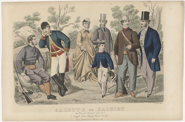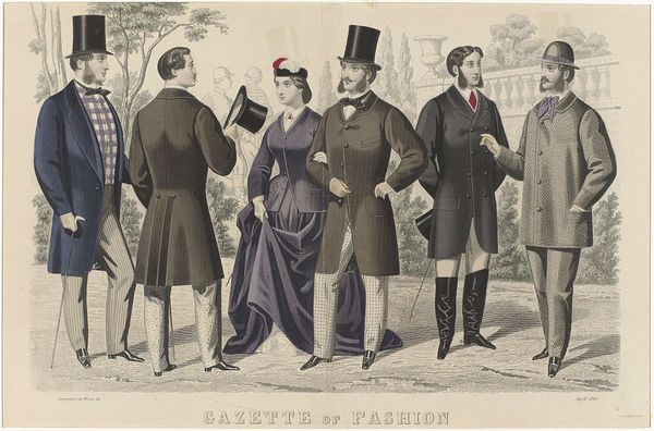 This fashion plate, printed on paper, was made for the Bulletin of Fashion in New York. This type of image, intended for a mass audience, reflects the rise of consumer culture in the 19th century. The printmaking process, likely lithography, allowed for the efficient reproduction of detailed images. Note the textures of the fabrics, the cut of the suits, and the overall elegance of the scene. These details were carefully rendered through skilled handwork, such as carving the image onto a printing stone, or engraving it onto a metal plate. Consider the labor involved, not only in producing the print itself, but also in the design and creation of the garments depicted. From textile production to tailoring, clothing manufacture relied on the work of many hands. The fashion plate obscures this reality, presenting an idealized vision of upper-class life, where consumption appears effortless. In its celebration of style, the print also reflects the social and economic structures that underpinned the fashion industry, and the cultural values of the time. By acknowledging these material and social dimensions, we can gain a deeper understanding of the image and its place in history.