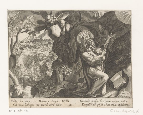 Editor: So, this is *The Thunder Storm*, an engraving by Paul Revere from 1774. It’s… pretty intense! I mean, you’ve got this really dramatic lightning bolt and these figures huddled under a tree. It’s making me feel a little anxious, to be honest. What do you see in this piece? Curator: Anxiety is spot on! It crackles, doesn’t it? To me, it’s pure, raw Romanticism, a bit before its time even. Think about it: humans dwarfed by nature’s power, a near-religious terror inspired by something beyond our control. Revere, more famous for his midnight ride, captured this moment perfectly in cross-hatched lines and the dramatic sky. Editor: Cross-hatched lines? Curator: Yes, layering lines to create shadow. That’s what builds up the stormy sky and the frightened expressions on their faces! They look almost theatrical. Editor: That's true, there’s a very posed feel about them despite what looks like a moment of imminent peril! Almost like…acting. Was this meant to convey more than just a literal storm? Curator: Precisely! I think he aimed to elicit awe and contemplation. Remember the enlightenment was coming to an end. How does that context shift your interpretation? Editor: Wow. It does. So it is no longer only about the landscape. There’s a conversation being had about reason versus... well, terror, basically. Very cool, thank you! Curator: Exactly! Art often mirrors, or, should I say, engraves our inner weather, doesn't it? Gives one pause, quite like a flash of lightning.