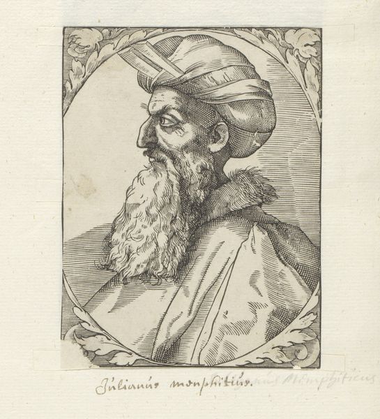Curator: This is Johann Andreas Benjamin Nothnagel's "Bearded Old Man with Turban and Two Long Feathers, in Profile to the Left." The medium used appears to be primarily ink on paper. Editor: It’s arresting. The hatching and stark monochrome give it a real weight, almost a sculptural feel despite being a drawing. There's such depth to the textures. Curator: Indeed, observe how Nothnagel utilized the tools at his disposal and his access to certain commodities; it is indicative of the socio-economic landscape of artistic production at the time. Was this work commissioned, or was Nothnagel partaking in academic exercises to establish prominence in history painting? What sort of inks were used? What labor went into their production? These questions of production shape my perception of it. Editor: I am drawn to the expressive use of line to create the texture of the fur and the wispy beard. Consider also the stark contrast of the plain background versus the rich details. The semiotic interplay generates an intriguing, aged effect; observe its structural relation and emotional influence on us. Curator: The choice of the subject too. The "exotic" other in costume, reflecting the era's fascination with and trade relationships within the Ottoman empire and North Africa. One can appreciate how it fed into colonial narratives of cultural appropriation and representation. Editor: Agreed, it's problematic. Formally, I note how the artist positioned the man in profile, perhaps for ease, but also notice that that creates distance. Curator: This portrait also encourages an analysis of how garments function as signifiers of wealth and position. Who had access to those feathers? And to the artisans to manufacture that particular garment? Editor: An object of opulence as perceived from Nothnagel's position... This close examination certainly illuminates aspects I overlooked. The tension between the tangible and symbolic weight is heightened by these sociopolitical insights. Curator: Likewise. Contemplating the formal composition enriches the context for my engagement with this image, broadening my perception of its function and creation.