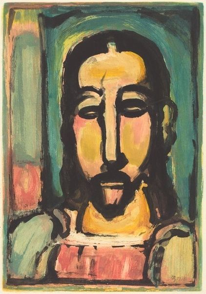 Curator: Bela Czobel's striking oil painting, "Czobel Deak Denes," is a portrait brimming with psychological depth. Editor: It feels... dreamlike, doesn't it? Almost unsettlingly intimate. The muted colors and the subject's closed eyes give off a strong sense of interiority, like we're peering into a private moment. Curator: I agree. Czobel often worked with a raw, expressive brushstroke. The strokes of vibrant color shaping the figure almost feel like whispers of inner thoughts, echoing the subject's emotions and the turbulent early 20th-century modernism in Hungary. Editor: Yes, and think about portraiture traditionally--it's about status, presentation. Here, it feels almost subversive. The rough, almost unfinished quality and the absence of clear social signifiers challenges conventional power dynamics inherent in the genre, highlighting vulnerability instead. Is the figure resting or unwell? Curator: Perhaps both. It reflects a certain post-war unease, I suspect. Many artists then were wrestling with portraying not just outward appearances, but inner states as a means of showing their raw response to an unsettling society. This canvas then shows its historical environment, offering commentary. It’s not just paint; it is evidence of society itself, isn't it? Editor: Precisely! Also, the composition focuses our gaze entirely on the face, demanding introspection. There is no real environment—instead a raw look into another person who we realize is likely contending with some of the same experiences that plague our contemporary existence. Curator: Ultimately, Czobel achieves more than a likeness. The artwork is instead the physical evidence of human experiences. Editor: A vulnerable look inside--that speaks volumes, I think, about the state of things both then, and now.