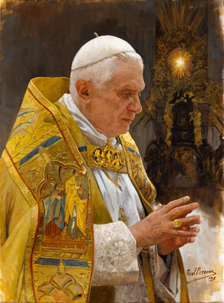 Curator: Jon McNaughton’s painting, “RONALD REAGAN IT CAN BE DONE”, depicts the former president in the Oval Office. Editor: The most striking element is the artist's rendering of Reagan himself, stiffly posed with folded hands, looking directly out at us. The scene reads as staged. Curator: Indeed. The painting borrows heavily from the historical portrait tradition while imbuing Reagan with the attributes of conservative American values. Note the small sign on the desk: "It Can Be Done." Editor: Which seems intentionally placed, even manufactured. Looking at it materially, the painting demonstrates impressive technical skill, yet that very skill feels deployed in service of myth-making. Curator: I agree, it seems the artist is crafting an idealized vision of American leadership. How might his choice to show Reagan at his desk, surrounded by family photos, a Bible, and an American flag speak to his identity? Editor: Each carefully positioned item telegraphs meaning. The desk and surrounding decor signal power, tradition, faith. What do you make of this almost pedantic use of symbols? Curator: To a modern viewer, the deliberate invocation of American conservatism can seem simplistic. We cannot overlook the context of Reagan's presidency, and its impact across intersectional categories like gender, race, and economics. It asks: Whose "American Dream" was actually being upheld? Editor: Right. How much artistic interpretation is influenced by both political intent and the practical means of distribution? I wonder if this painting challenges, even reinforces, the divide between art intended for private display versus widespread propaganda? Curator: The work's direct visual language promotes ideological dialogue around leadership. Ultimately, "It Can Be Done," demands an examination of historical values in light of contemporary experience. Editor: I’m left with more questions about this image and McNaughton’s practice; particularly when process and intention collide.