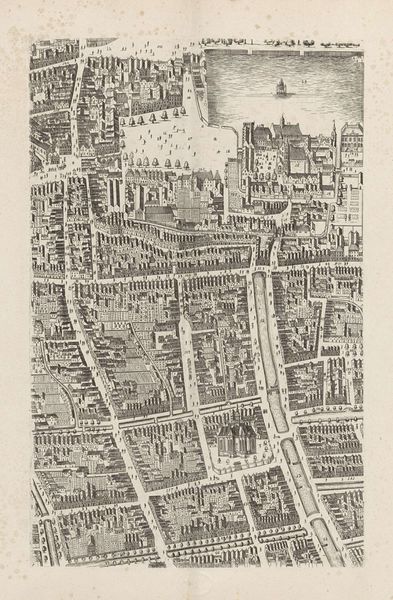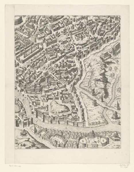Curator: This print, titled "Plattegrond van Rome in de Romeinse tijd (vijfde deel)" dates back to 1773 and gives us a bird’s eye view of ancient Rome. What stands out to you most about it? Editor: Well, first, it's incredible how detailed it is, almost like looking at an architectural model. It’s really captivating to imagine how people lived in such a meticulously planned space. But it also feels…distant, almost clinical. What are your thoughts? Curator: I appreciate that observation. Indeed, the "clinical" aspect points towards the Enlightenment's obsession with order and reason. Consider how Neoclassicism, the movement to which this print belongs, revived classical forms not just aesthetically, but as symbols of societal organization and control. What does it tell us that 18th-century Europeans were so fascinated with meticulously mapping and documenting a past empire? Editor: It seems like they wanted to capture or perhaps control the past by turning it into something knowable and measurable. A way to legitimize their own power maybe? Curator: Exactly. And notice the perspective; the all-seeing "eye" implies a position of dominance, a way of visually "owning" the Roman Empire. What’s omitted from this rendering is also telling. Where are the common people, the messiness of daily life, or the voices of dissent? Editor: That's a great point. The image focuses on monumental architecture and clean lines, almost erasing the human element and its potential struggles. So, what was produced was not simply a depiction of the city, but an ideologically motivated one? Curator: Precisely. The engraving reflects a specific viewpoint rooted in the socio-political landscape of its time. By carefully examining such visual strategies, we start questioning whose story gets told, and how it shapes our understanding of history. Editor: It really shifts my perspective. I’ll never look at a historical map the same way again. Thanks for opening my eyes! Curator: It's been a pleasure, the exchange really made the artwork speak.