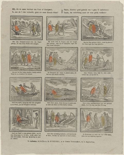 This print, made by Brepols & Dierckx Zoon, presents a series of scenes intended to instruct and reward children, as the inscription suggests. Dominant within each vignette is the recurring motif of the horse and rider, a symbol resonant with power and guidance. Consider the archetype of the horseman across cultures. From classical antiquity, where equestrian statues conveyed authority and nobility, to its presence in folklore, the horse and rider embody control and direction. Observe how this motif persists through history, appearing in various guises, from triumphant military leaders to allegorical figures. It’s fascinating to note how the primal connection between humans and horses, deeply rooted in our collective memory, manifests here. This relationship evokes feelings of aspiration and adventure. This symbol is not just a figure but a reflection of our psychological drive toward mastery and understanding as we navigate the world around us.