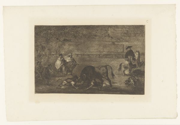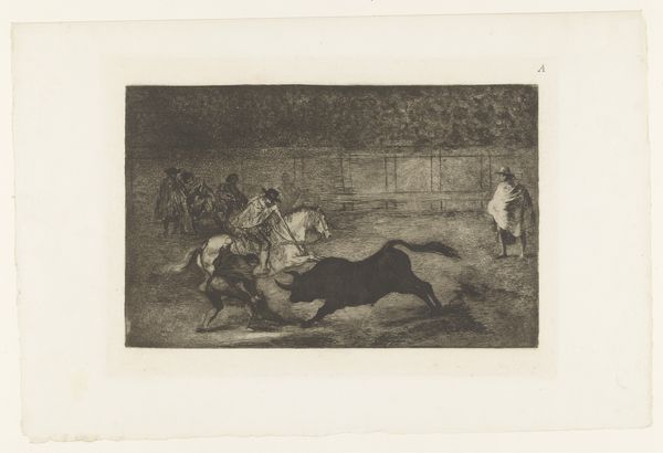 This print of a bullfight, ‘Man impaled by the horn of a bull’ was made by Francisco Goya, using etching, aquatint, and drypoint. These are all intaglio processes, meaning the image is incised into a metal plate, here probably copper. Goya would have painstakingly drawn the scene through a waxy ground, bitten the plate with acid, and then added further darks using aquatint - a fine dusting of resin that creates a granular tone when etched - and drypoint, where a sharp needle scratches directly into the metal. The result is a dramatic image, a ballet of skilled labor and mortal risk. Bullfighting in Goya’s time was both a popular entertainment and a highly ritualized display, with its own aesthetic conventions. Goya himself was fascinated with the subject, attracted to its potent mixture of spectacle, violence, and tradition. Prints like this one allowed Goya to disseminate his vision widely, beyond the elite circles of painting commissions. They remind us that art-making is always a form of communication, shaped by available tools and production processes.