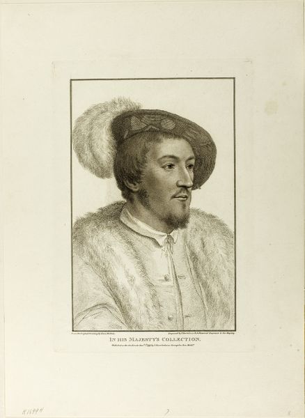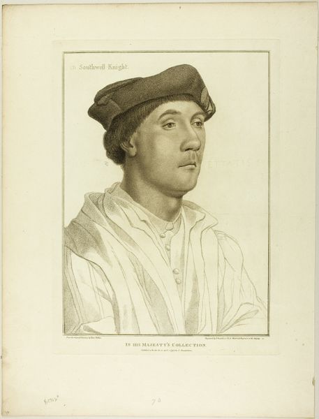 This engraving of Lord Rich was made by Francesco Bartolozzi in the 18th century. But it is after an original drawing by Hans Holbein, who worked two centuries earlier. The image is part of a tradition that aimed to preserve the likenesses of important historical figures, and disseminate those images widely through printmaking. Looking at it, we might ask, what is the role of art in constructing a national narrative, and shaping collective memory? Lord Rich was a significant figure in Tudor England, serving as Lord Chancellor under Edward VI. His presence in the royal collection, as the inscription states, suggests an effort to create a visual lineage of power. To understand this image fully, we might delve into the history of portraiture, the role of the monarchy in commissioning and collecting art, and the ways in which historical figures are remembered and represented. We can consider art as a product of social forces, institutions, and cultural values.